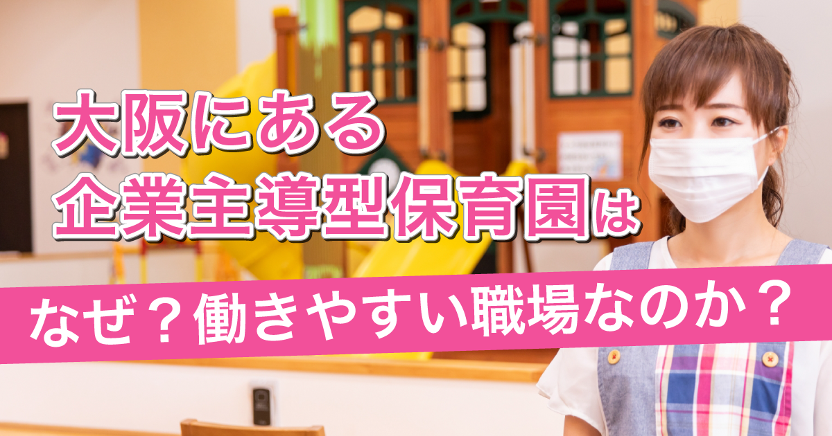 今回は様々な形態の保育園の中でも企業主導型保育園が働きやすいこと、そして大阪の企業主導型保育園はいい職場であることを解説したいと思います。ぜひみなさんの働く保育園として、企業主導型保育園を候補に入れてみたください。